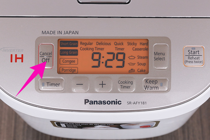 - Nếu bạn đang “hấp” hoặc “làm sạch”, nồi sẽ hiển thị lỗi khi nhiệt độ bất thường được phát hiện. Khi đó, nhấn phím “Cancel/Off”.