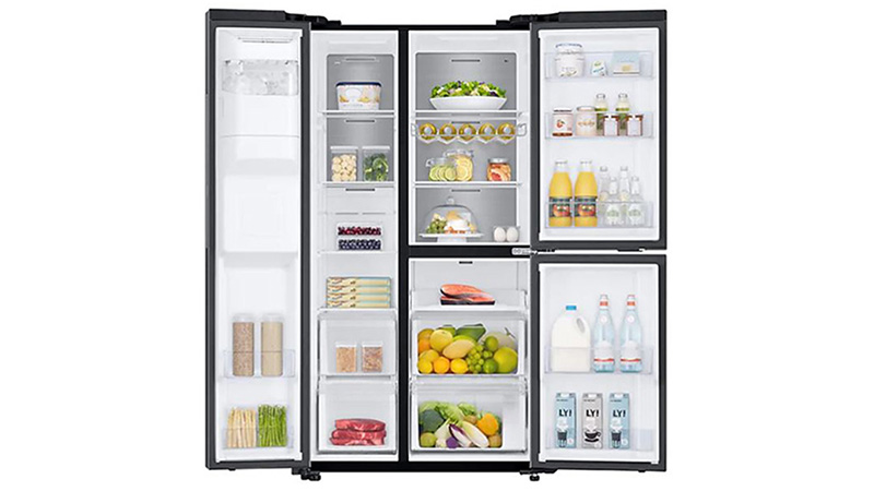 Nội thất tủ lạnh Side by Side chia ngăn rõ ràng