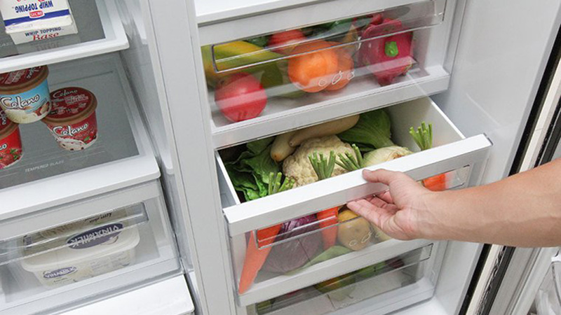 Tủ lạnh Side by Side thường có dung tích trên 500 lít, ngăn chứa lớn, thích hợp với gia đình nhiều người hay các dịp lễ, tết cần phải lưu giữ nhiều thực phẩm. Một số tủ lạnh Side by Side còn được trang bị khay kính chịu lực nên bạn không cần lo lắng khi đặt thực phẩm có khối lượng lớn vào tủ.