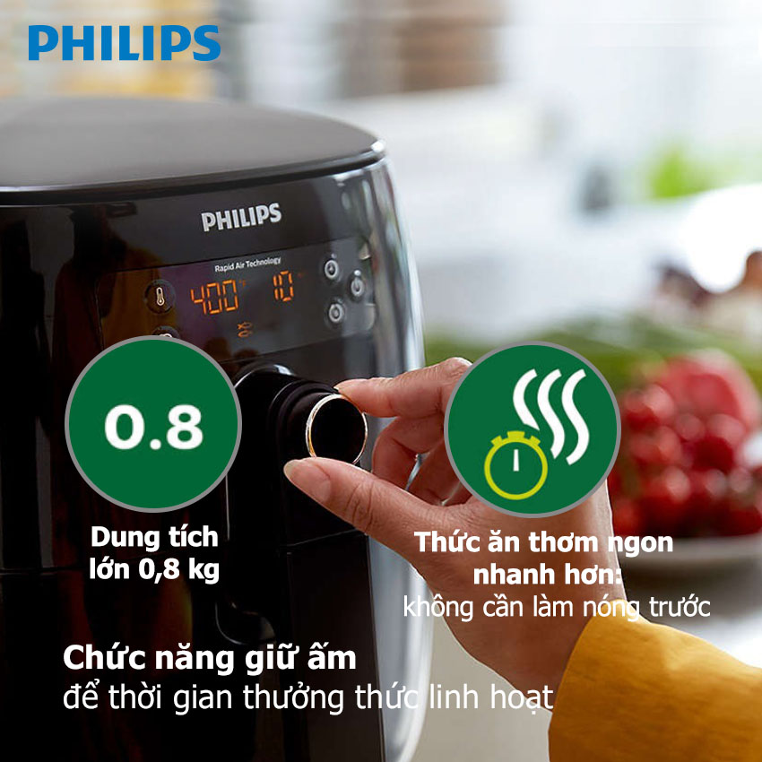 Với nồi chiên không khí Philips, bạn sẽ không cần phải làm nóng trước vì bếp luôn ở chế độ sẵn sàng. Máy khởi động nhanh hơn và duy trì vận tốc cao trên toàn bộ quá trình nấu nướng, giúp bạn tiết kiệm thời gian nấu nướng mỗi ngày.