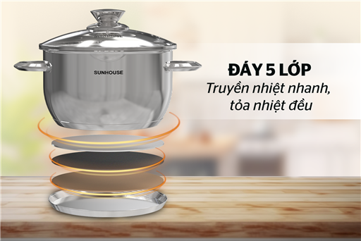 Đáy 5 lớp bền bỉ, truyền nhiệt nhanh, toả nhiệt đều