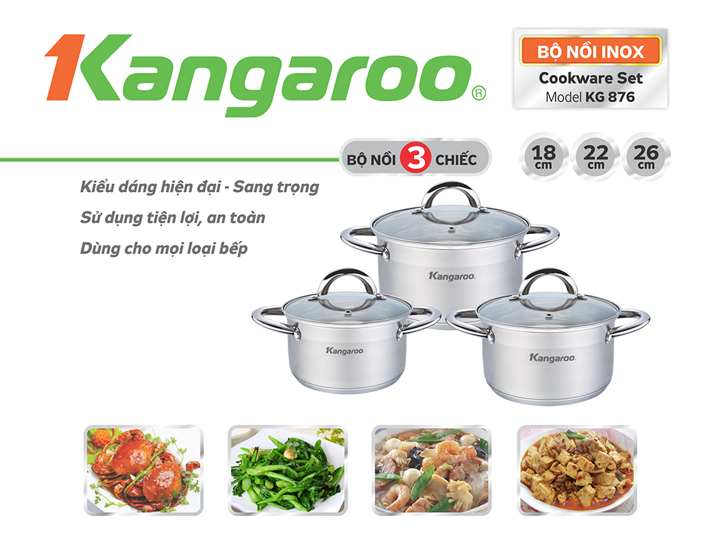 Bộ nồi inox cao cấp Kangaroo KG876 Cung cấp bởi CÔNG TY CỔ PHẦN LIÊN DOANH KANGAROO QUỐC TẾ