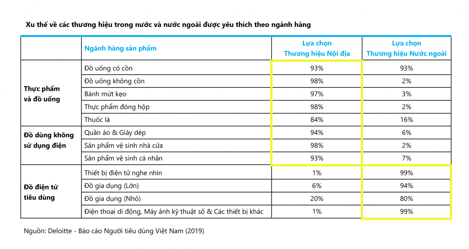 Người tiêu dùng được khảo sát lựa chọn các thương hiệu nước ngoài đối với ngành hàng Đồ gia dụng lớn chiếm đến 94% (Nguồn: Deloitte Việt Nam)