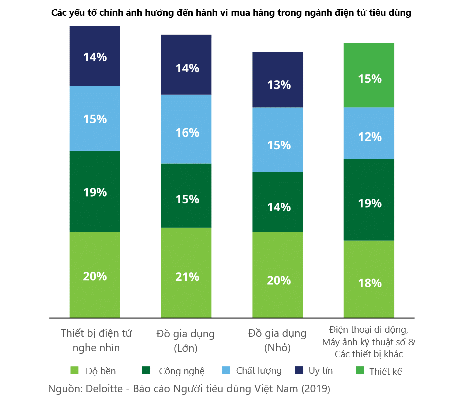 Bốn yếu tố chính ảnh hưởng đến hành vi mua hàng trong ngành hàng đồ gia dụng là độ bền, công nghệ, chất lượng, và uy tín (Nguồn: Deloitte Việt Nam)