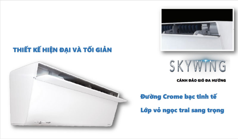 Thiết kế tối giản với những đường Crom bạc tinh tế, vỏ ngoài ánh ngọc trai sang trọng, dòng điều hòa này sở hữu diện mạo hiện đại, đẳng cấp mà bất kỳ ai cũng bị cuốn hút ngay từ cái nhìn đầu tiên.