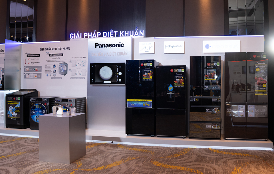 Với giải pháp diệt khuẩn, Panasonic sử dụng kết hợp công nghệ Blue Ag+ và công nghệ nanoe X trên các sản phẩm gia dụng như tủ lạnh, máy giặt. Công nghệ nanoe X dùng trên tủ lạnh và máy giặt tạo ra hàng nghìn phân tử nanoe với kích thước siêu nhỏ, giúp giảm dư lượng thuốc trừ sâu trong rau củ quả tới 2,8 lần, tiêu diệt hầu hết vi khuẩn trong tủ lạnh đồng thời ngăn chặn các vi khuẩn nấm mốc và mùi khó chịu.
