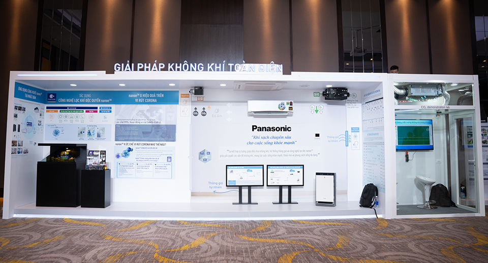 Ở giải pháp khí sạch, Panasonic có công nghệ độc quyền nanoe X được ứng dụng trên các sản phẩm điều hòa và máy lọc không khí cho các tòa nhà văn phòng, khách sạn, phòng khám và nhà ở. Nanoe là công nghệ phóng điện đa cực, tập trung phóng điện vào 4 điện cực hình kim, giải phóng các ion hydroxit (OH) tự do. Những ion này giúp hấp thụ hydro, những yếu tố gây ô nhiễm và ức chế hoạt động của virus, đồng thời loại bỏ phần tử ô nhiễm bay lơ lửng, bao gồm cả bụi mịn cỡ PM2.5 cũng như khử mùi hôi, ngăn ngừa các tác nhân gây dị ứng.
