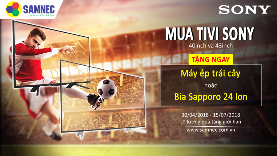 Công ty CPQT Samnec thông báo chương trình khuyến mại khi mua Tivi mang thương hiệu Sony dòng W với 40 inch và 43 inch trở lên