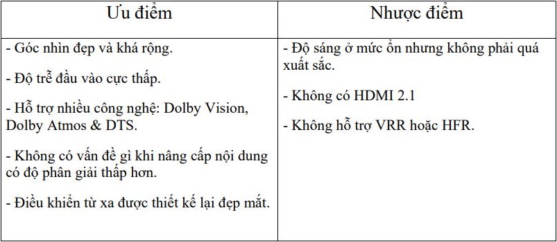 Nhìn chung, vẫn giữ lại các điểm mạnh của mẫu TV Sony tiền nhiệm năm 2021 và một số cải tiến nhỏ cho model TV X80K năm nay, TV Sony Bravia 4K X80K bản 65inch có khá nhiều điểm mạnh vượt trội, mang lại cho bạn những trải nghiệm tốt về một chiếc TV màn hình lớn trong dòng TV giá rẻ đáng để cân nhắc năm 2022.