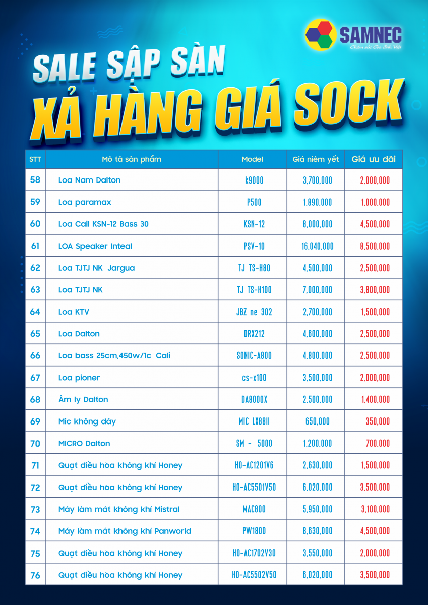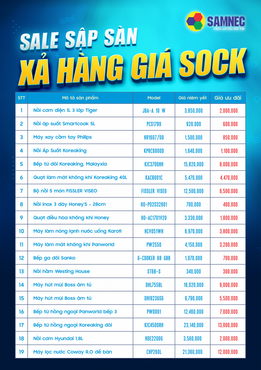 Vào tháng 4 này, SAMNEC xin gửi tặng đến quý khách hàng những sản phẩm giảm giá cực shock lên đến 49%: