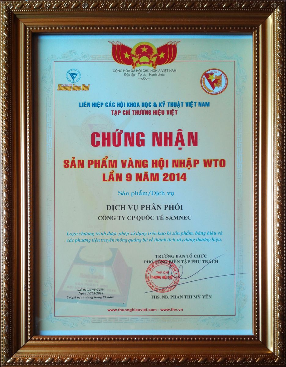 - Chứng nhận: Sản phẩm vàng hội nhập WTO - Cấp ngày: - Được cấp bởi: |