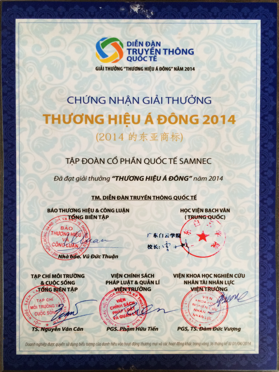- Chứng nhận: Thương hiệu Á Đông - Cấp ngày: - Được cấp bởi: |