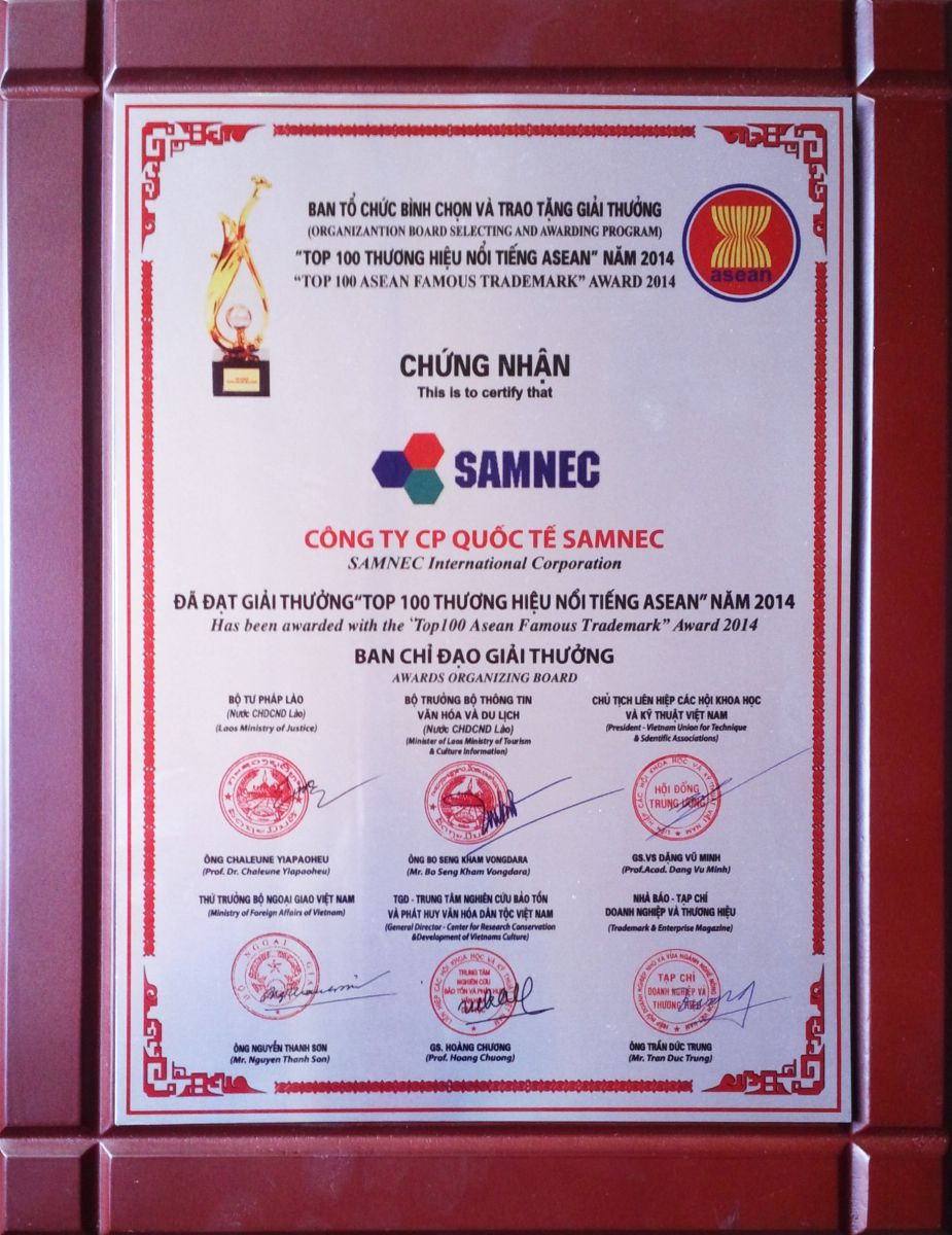 - Chứng nhận: Top 100 thương hiệu nổi tiếng ASEAN - Cấp ngày: - Được cấp bởi: |