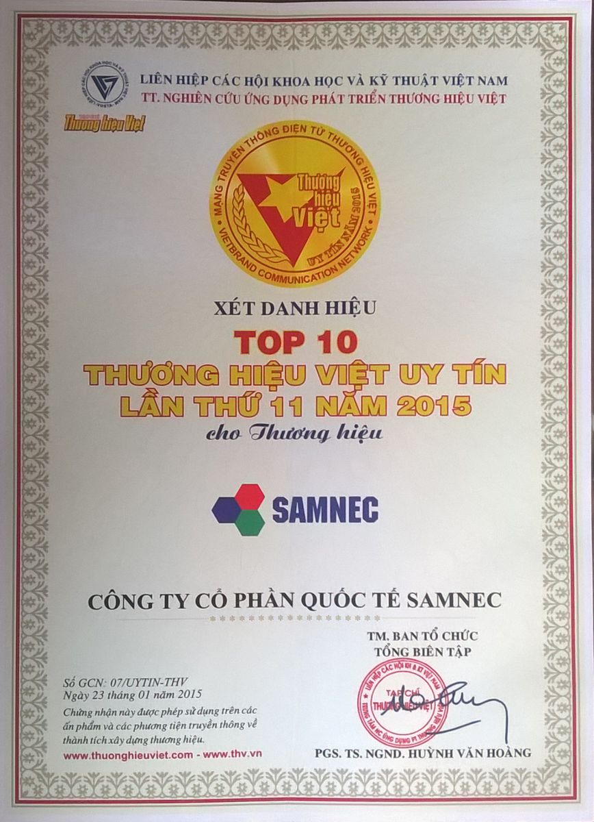 - Chứng nhận: Top 10 thương hiệu Việt uy tín - Cấp ngày: - Được cấp bởi: |