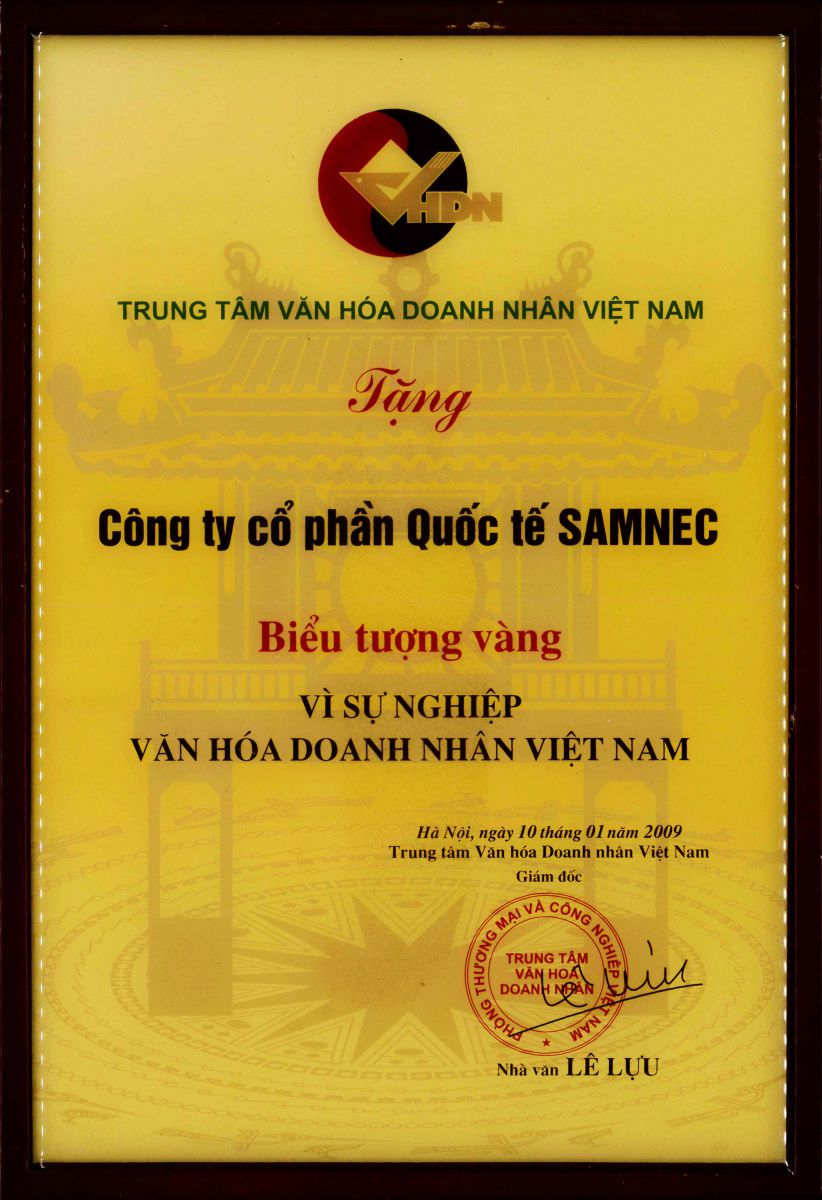 - Chứng nhận: Biểu tượng vàng vì sự nghiệp văn hóa doanh nhân Việt Nam - Cấp ngày: - Được cấp bởi: |