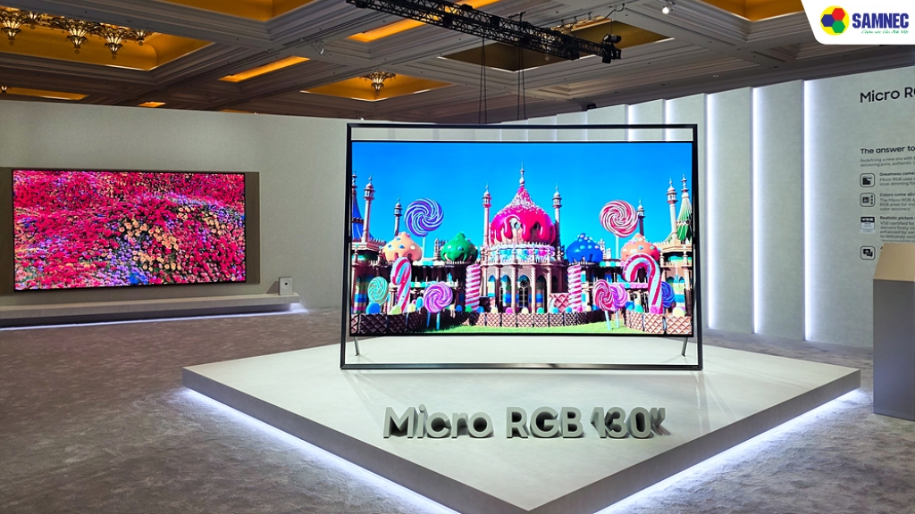 Không chỉ gây ấn tượng với kích thước 130 inch, TV Micro RGB còn đánh dấu bước tiến lớn về công nghệ hiển thị. Samsung là thương hiệu đầu tiên phát triển và thương mại hóa thành công dòng TV Micro RGB từ năm 2025.