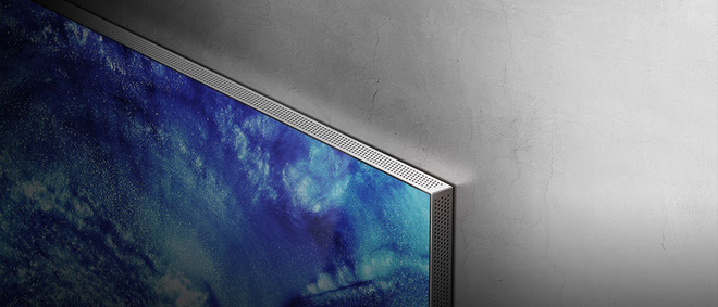 Với việc sở hữu viền màn hình mỏng như vậy, phần loa của TV này cũng được bố trí rất khác, khi dàn đều trên bốn cạnh bên của màn hình. Hệ thống loa này cho phép TV tạo ra một không gian âm thanh rất rộng lớn với bốn chiều trên dưới trái phải.