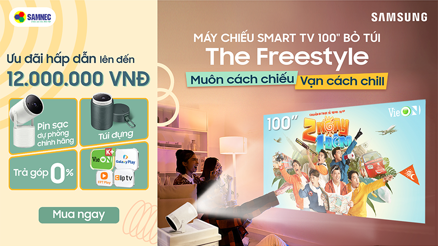 Sở hữu ngay máy chiếu bỏ túi Samsung The FreeStyle 100 inch SP-LSP3BLAXXV tại Samnec Điện Máy: