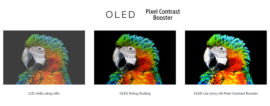 Màn hình của Sony A9S cũng được trang bị công nghệ Pixel Contrast Booster và X-Motion Clarity giúp cải thiện màu sắc, độ tương phản và độ mượt của hình ảnh chuyển động. Cảm biến ánh sáng cũng được tích hợp để điều chỉnh độ sáng màn hình của TV theo ánh sáng môi trường xung quanh.