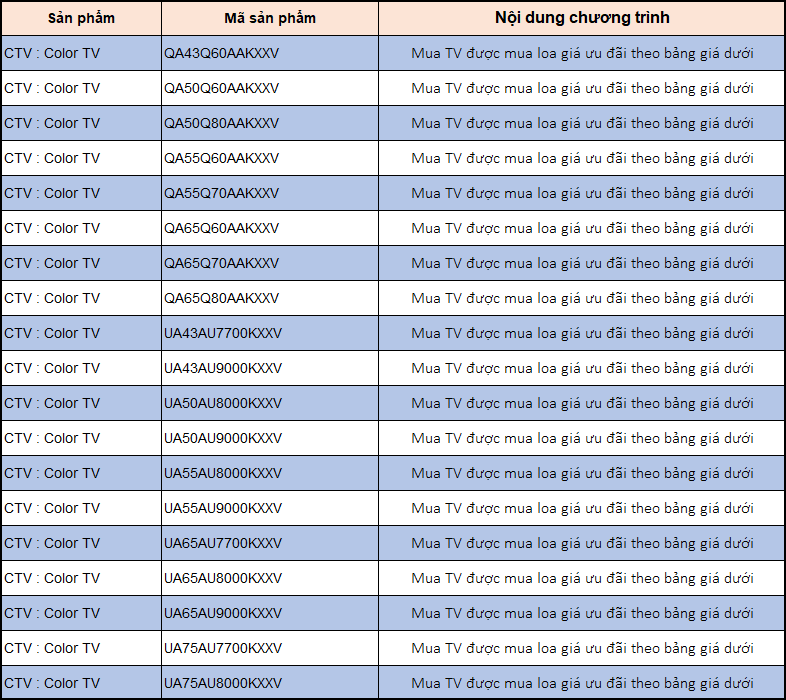 - Quý khách hàng mua các sản phẩm TV Samsung sẽ được mua kèm loa thanh Samsung với giá giảm sốc lên đến 45%.