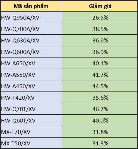 * Các model loa thanh Samsung được giảm giá khi mua kèm TV Samsung: