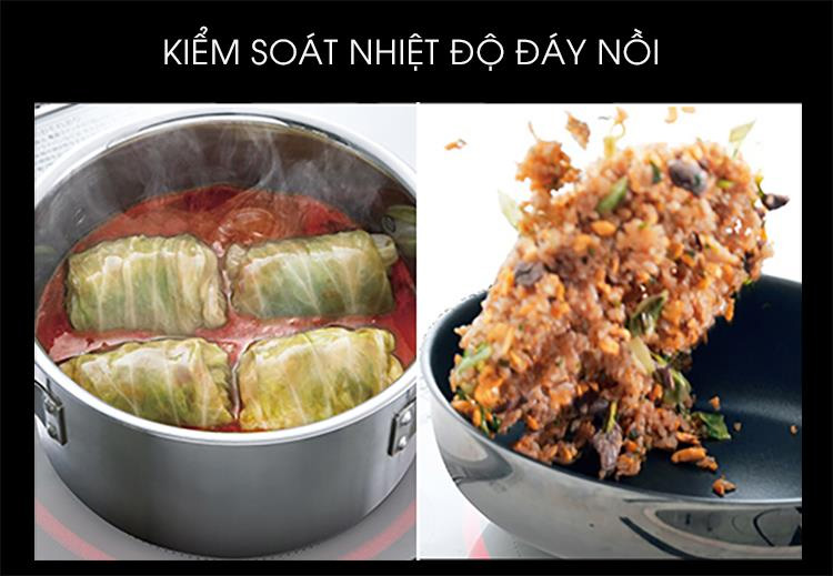 Nhờ vào cảm biến nhiệt đặt dưới bếp, gần vùng nấu. Khi đáy nồi xuất hiện hiện tượng quá nóng (thường là do đồ ăn đun bị cạn nước hay cháy gây ra) thì bếp sẽ tự động ngắt để đảm bảo an toàn.