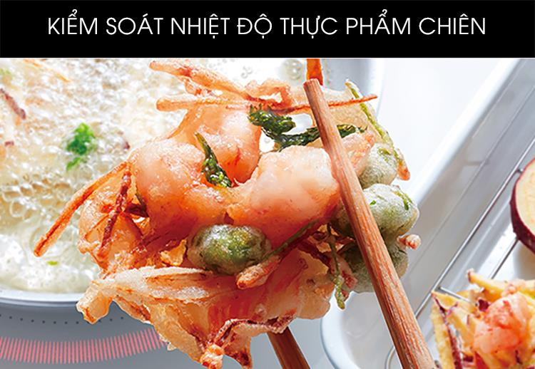 Nhiệt độ có thể được đặt theo mức tăng 10 °C. Làm nóng đến nhiệt độ cài đặt với công suất làm nóng cao ngay lập tức và ngay cả khi nhiệt độ giảm tại thời điểm bổ sung thực phẩm, nó sẽ nhanh chóng phát hiện và tăng nhiệt độ. Bếp giữ nhiệt độ không đổi nên món chiên rất ngon và chín đều.