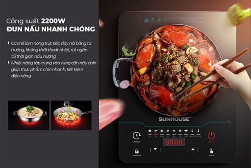 Bếp từ Sunhouse với 7 chế độ nấu cài đặt sẵn