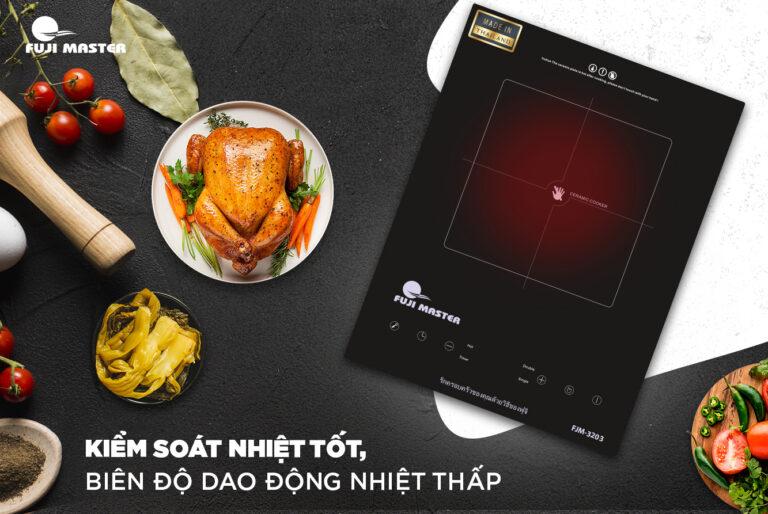 Kết nối thông minh của Bếp hồng ngoại Fujimaster giúp người dùng dễ dàng kiểm soát mức nhiệt khi nấu: Vận tốc quạt tản nhiệt tự động điều chỉnh theo cấp độ hút, kết hợp chức năng quản lý mức gia nhiệt cùng 2 mức hiển thị nhiệt dư. Ngoài ra, biên độ giao động nhiệt gần như 1 đường thẳng (không có nhiều sự thay đổi nhiệt độ khi nấu) giúp món ăn trở nên ngon hơn, đặc biệt là các món ninh, hầm, kho,…