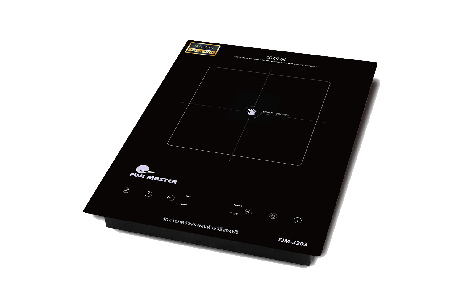 Mặt trước và mặt sau Bếp hồng ngoại Fujimaster FJM-3203 được thiết kế tỉ mỉ từng đường nét. Mặt bếp làm bằng kính Ceramic cao cấp siêu bền, chịu lực va đập tốt, chống trầy xước, chịu nhiệt sốc nhiệt lên đến 750 độ C.