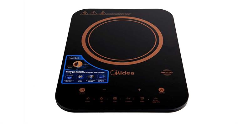 Mặt bếp điện từ Midea bền đẹp, sáng bóng, chịu nhiệt chịu lực tốt an toàn cho người sử dụng, dễ dàng vệ sinh lau chùi.