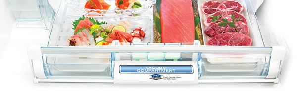 Ngăn chân không là một trong những công nghệ bảo quản tiên tiến nhất đến từ hãng sản xuất hàng đầu Nhật Bản Hitachi. Với máy bơm nhỏ được thiết kế đặc biệt trong ngăn chân không tạo môi trường lý tưởng để bảo quản thực phẩm, giúp kéo dài thời gian lưu trữ, cho độ tươi ngon lâu hơn mà vẫn giữ nguyên dưỡng chất như khi mới mua về. Đây là công nghệ bảo quản thực phẩm tiên tiến nhất hiện nay được ứng dụng trên các dòng tủ lạnh Hitachi cao cấp.