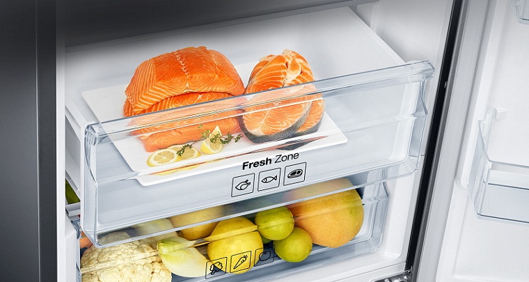 Được trang bị trên những chiếc tủ lạnh Multidoor (tủ lạnh nhiều cửa) hiện đại của Samsung, khi bạn đặt nhiệt độ trong tủ là 1°C, thì FreshZone sẽ được tự động điều chỉnh ở -1°C; cung cấp nhiệt độ thích hợp để bảo quản thịt cá giúp giữ trọn hương vị và độ dinh dưỡng tối ưu nhất ngay cả khi bạn mở cửa tủ nhiều lần.