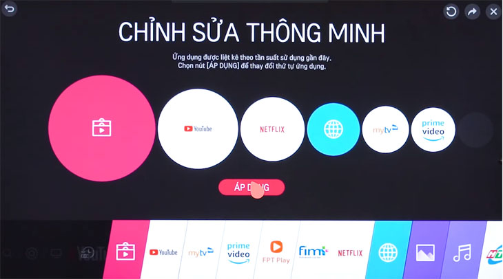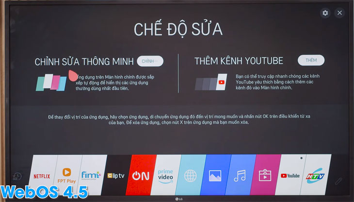 Chế độ chỉnh sửa trên WebOS 4.5 có bổ sung thêm hai chế độ mới "CHỈNH SỬA THÔNG MINH" và "THÊM KÊNH YOUTUBE".