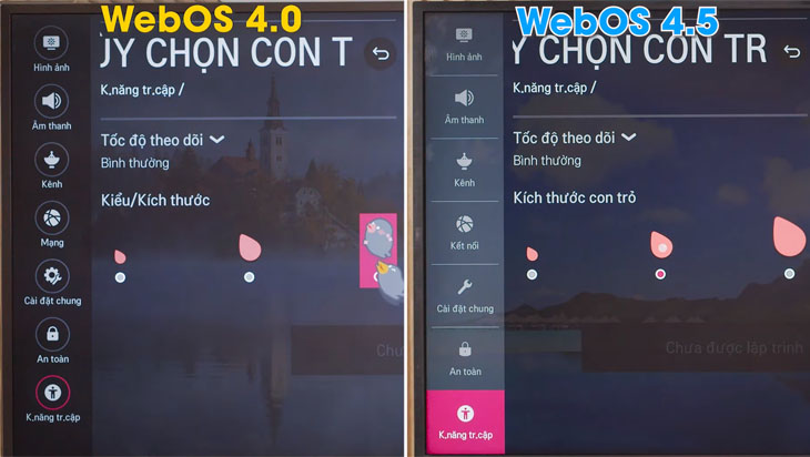 Trên WebOS 4.0 bạn có thể lựa chọn con chim làm trỏ chuột, tuy nhiên khi lên WebOS 4.5 bạn sẽ không còn tùy chọn này nữa.
