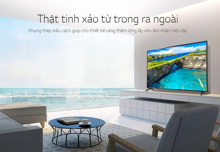Smart Tivi LG 43 inch 4K UHD 43UK6200 có thiết kế đơn giản với viền màn hình mỏng bằng thép kết hợp cùng chân đế dạng chữ V vững chắc, giúp tivi đứng vững trên mọi bề mặt phẳng. Khung kim loại trang nhã của tivi sẽ mang đến không gian nội thất nhà bạn một cảm giác hiện đại và vượt thời gian.