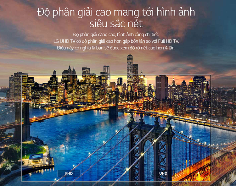 Thiết bị có độ phân giải cao gấp 4 lần so với TV Full HD, hình ảnh càng chi tiết hơn. Bên cạnh đó, còn cung cấp màu sắc chính xác và hình ảnh tuyệt đẹp từ mọi góc độ, đem đến những trải nghiệm hình ảnh phù hợp và đẹp mắt nhất.