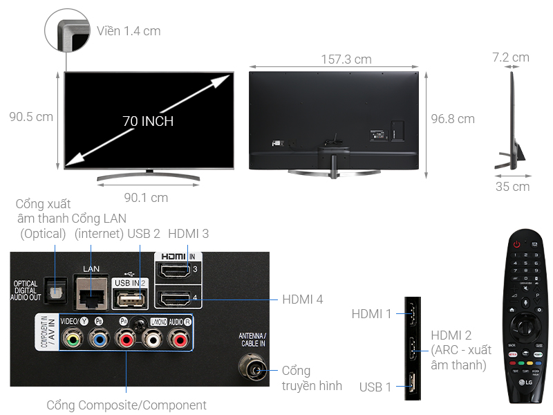 * Bộ điều khiển từ xa Magic đi kèm cùng với một số model TV có nền tảng webOS nhất định.