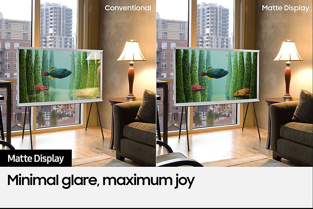 Màn hình mờ giúp giảm đáng kể độ chói từ màn hình của The Serif để bạn có thể thưởng thức những gì mình đang xem một cách trọn vẹn nhất.