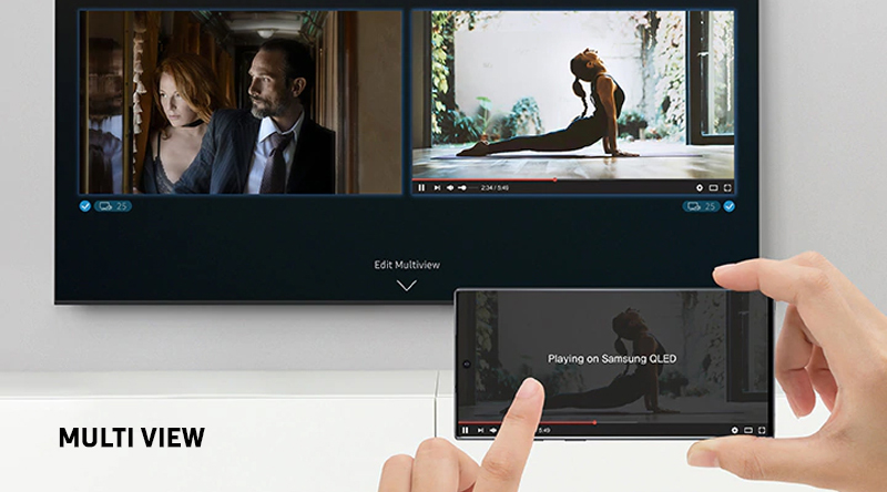 Tiện lợi hơn với chế độ Multi View chia đôi màn hình TV, với một bên sẽ hiển thị nội dung bạn đang xem và bên còn lại sẽ hiển thị màn hình điện thoại. Hạn chế sao nhãng, dễ dàng theo dõi mọi nội dung từ một màn hình duy nhất.