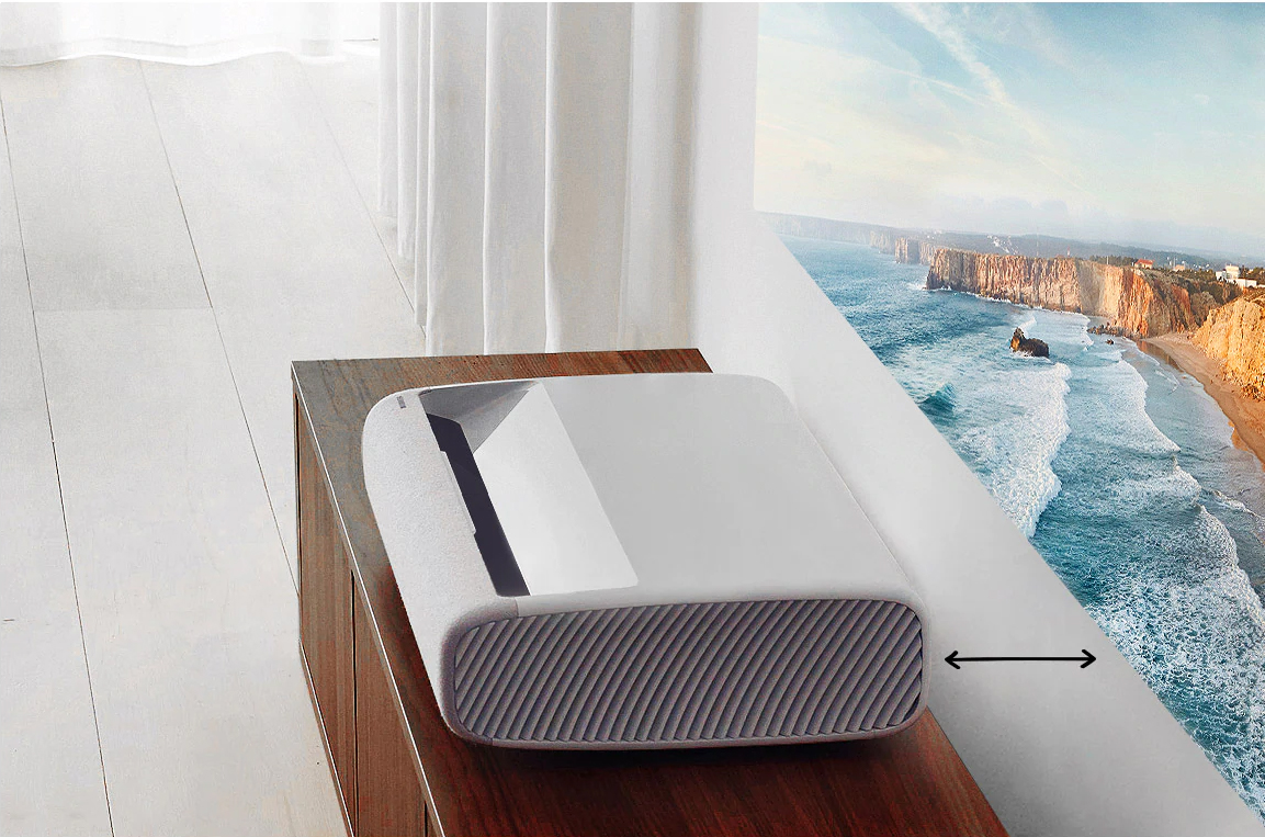 Máy chiếu được thiết kế để đặt ngay trước tường, giúp dễ dàng lắp đặt và sử dụng bất cứ lúc nào. Khi bật máy, bạn có thể tiếp tục điều chỉnh kích thước màn hình một cách nhanh chóng, phù hợp với nhu cầu sử dụng.