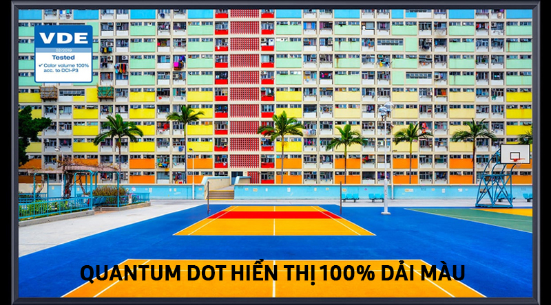 Truyền Tải Trọn Vẹn 100% Dải Sắc Màu. Công nghệ Quantum Dot hiển thị 100% dải màu với độ chân thực gần với màu thực tế nhất, cho bạn thưởng thức từng khung hình mang màu cuộc sống, tuyệt đẹp ở mọi mức độ sáng.