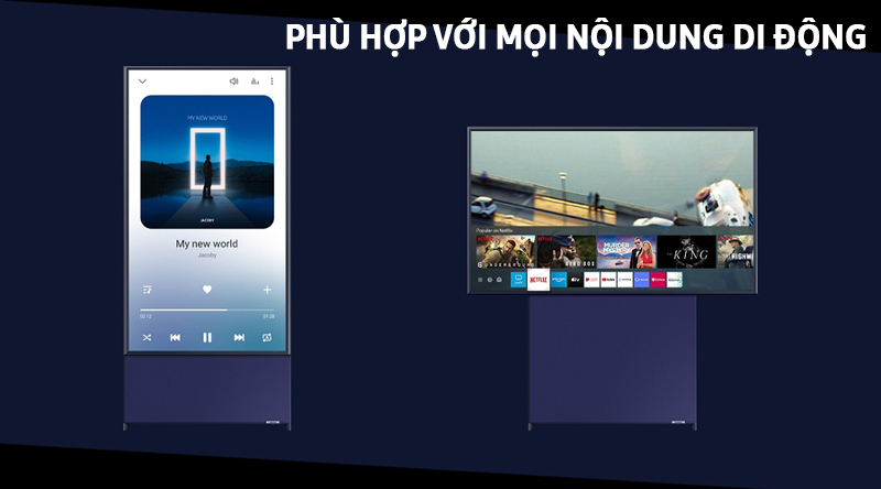 Thiết Kế Linh Hoạt Kết hợp cùng chân đế màu lam đậm, The Sero khẳng định dấu ấn với vẻ đẹp hoàn mỹ, tinh giản và khác biệt. Vượt xa mọi định chuẩn từng có, The Sero tái định nghĩa khả năng mà một chiếc TV có thể mang lại. Nâng tầm không gian với thiết kế độc bản, tinh gọn ấn tượng.