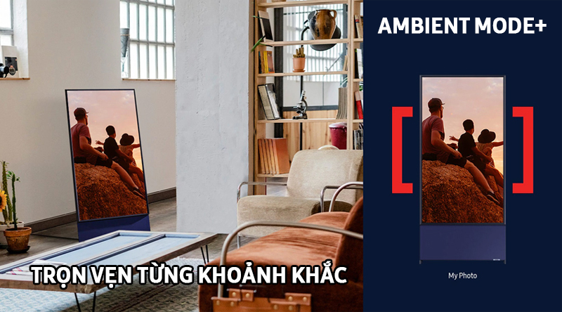 Chế Độ Ambient Mode+, Kiến tạo không gian yêu thích với các tùy chọn từ chế độ Ambient Mode+ trên The Sero. Dễ dàng thiết lập những thông tin hữu ích trên màn hình, trực quan hóa những giai điệu tiệc tùng hay bản nhạc bình yên cho mọi khoảnh khắc trong căn nhà bạn.