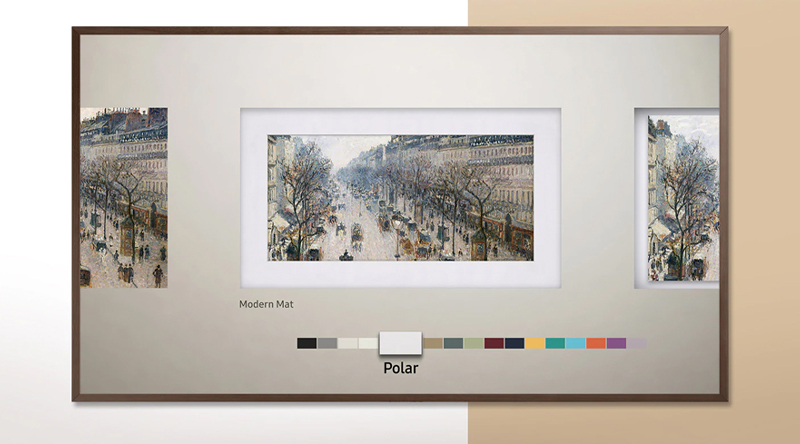 Bố Cục Matte Tùy Chọn, sáng tạo TV khung tranh theo cách bạn muốn với 7 phong cách bố cục khác nhau cùng 10 sắc màu đa dạng từ chế độ Art Mode. Xây dựng phòng trưng bày ấn tượng với những hình ảnh và tác phẩm nghệ thuật tuyệt vời nhất cùng The Frame.