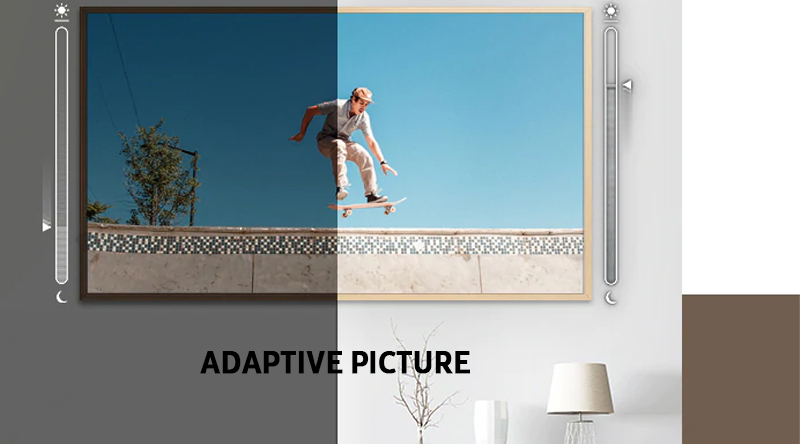 Công Nghệ Adaptive Picture, với khả năng tự động tối ưu độ sáng và tăng cường độ tương phản dựa trên nội dung video và nguồn sáng xung quanh, The Frame mang đến chất lượng hiển thị đỉnh cao, đồng nhất dù bạn xem ở bất kỳ thời điểm nào trong ngày.