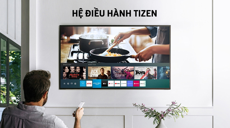 Hệ Điều Hành TIZEN Mạnh Mẽ, tận hưởng TV thông minh theo cách bạn chưa từng biết. The Frame cho phép bạn điều khiển TV nhanh chóng qua giọng nói, khám phá thế giới giải trí ấn tượng với một lần nhấn và thưởng thức liền mạch nội dung chuyển tiếp từ di động đến TV.