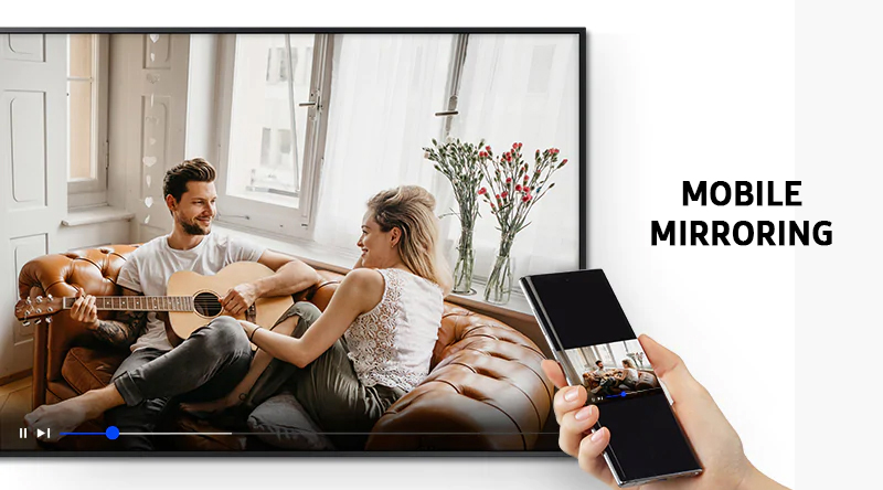 Tính Năng Mobile Mirroring, ứng dụng SmartThings giúp bạn dễ dàng kết nối và trình chiếu liền mạch nội dung yêu thích trên màn hình lớn, tuyệt đẹp của The Frame. AirPlay 2 tích hợp khai mở khả năng truyền phát, chia sẻ và trình chiếu nội dung từ thiết bị Apple, nhanh chóng và đơn giản hơn bao giờ hết.