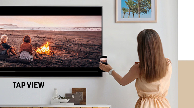 Tính Năng Tap View, thỏa sức thưởng thức nội dung yêu thích trên màn hình lớn một cách dễ dàng chỉ với một chạm. Đơn giản chạm nhẹ điện thoại thông minh vào The Frame, thiết bị sẽ nhanh chóng được kết nối và truyền phát nội dung bất tận