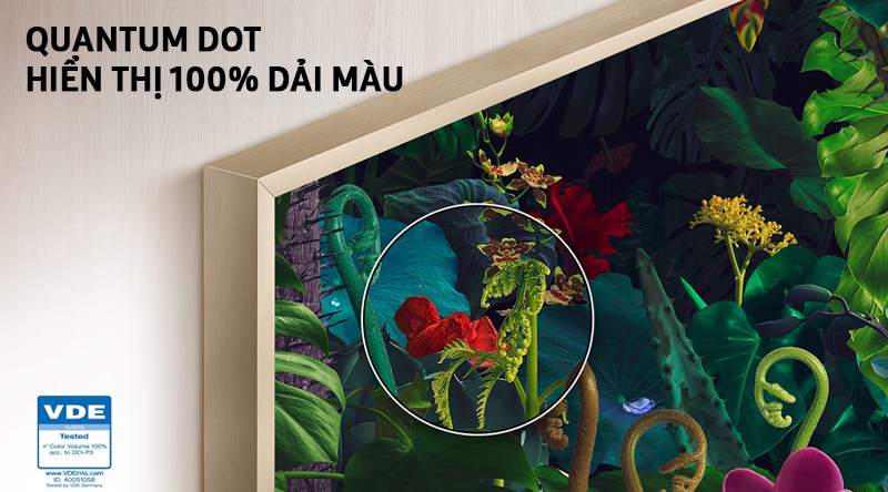 Công Nghệ Quantum Dot Hiển Thị 100% Dải Màu, thưởng thức các tác phẩm nghệ thuật một cách trung thực nhất với công nghệ Quantum Dot truyền tải 100% dải sắc màu và độ tương phản ấn tượng từ Dual LED. Với khả năng tái tạo hoàn hảo từng chi tiết phức tạp, The Frame mang đến trải nghiệm xem đỉnh cao, hoàn mỹ từ mọi vị trí không gian.